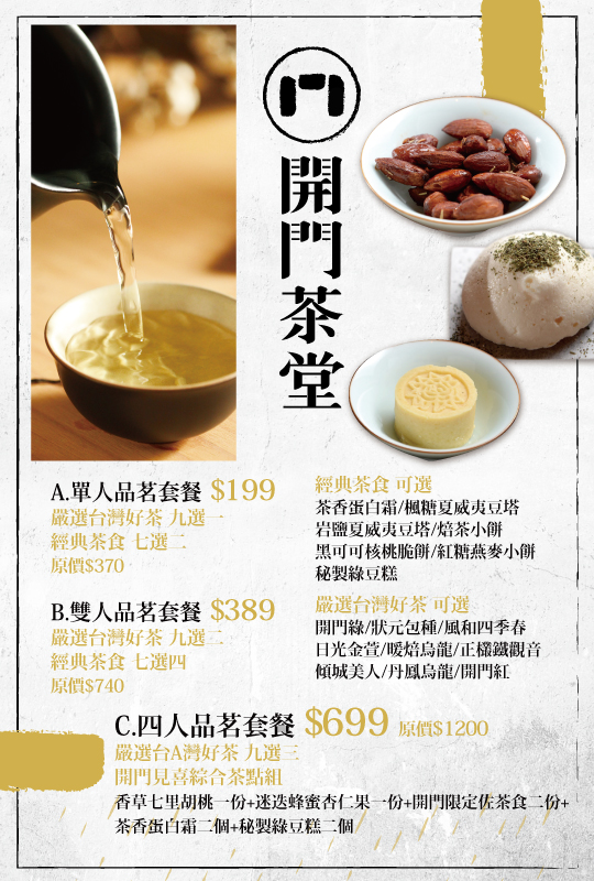 〈嚴選台灣好茶(開門綠/狀元包種/風和四季春/日光金萱/暖焙烏龍/正欉鐵觀音/傾城美人/丹鳳烏龍/開門紅 九選二) + 經典茶食(茶香蛋白霜/楓糖夏威夷豆塔/岩鹽夏威夷豆塔/焙茶小餅/黑可可核桃脆餅/紅糖燕麥小餅/秘製綠豆糕 七選四)〉