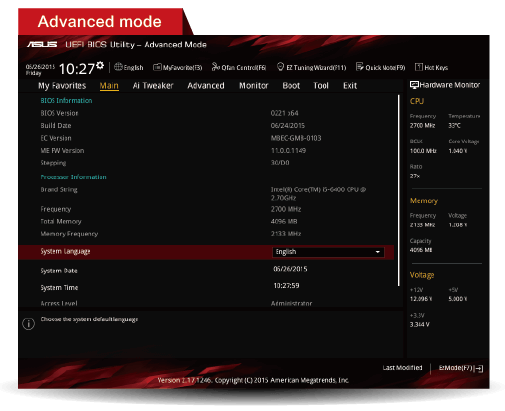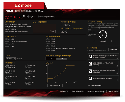 - 華碩 EFI BIOS EZ 模式提供簡單易用的使用者介面