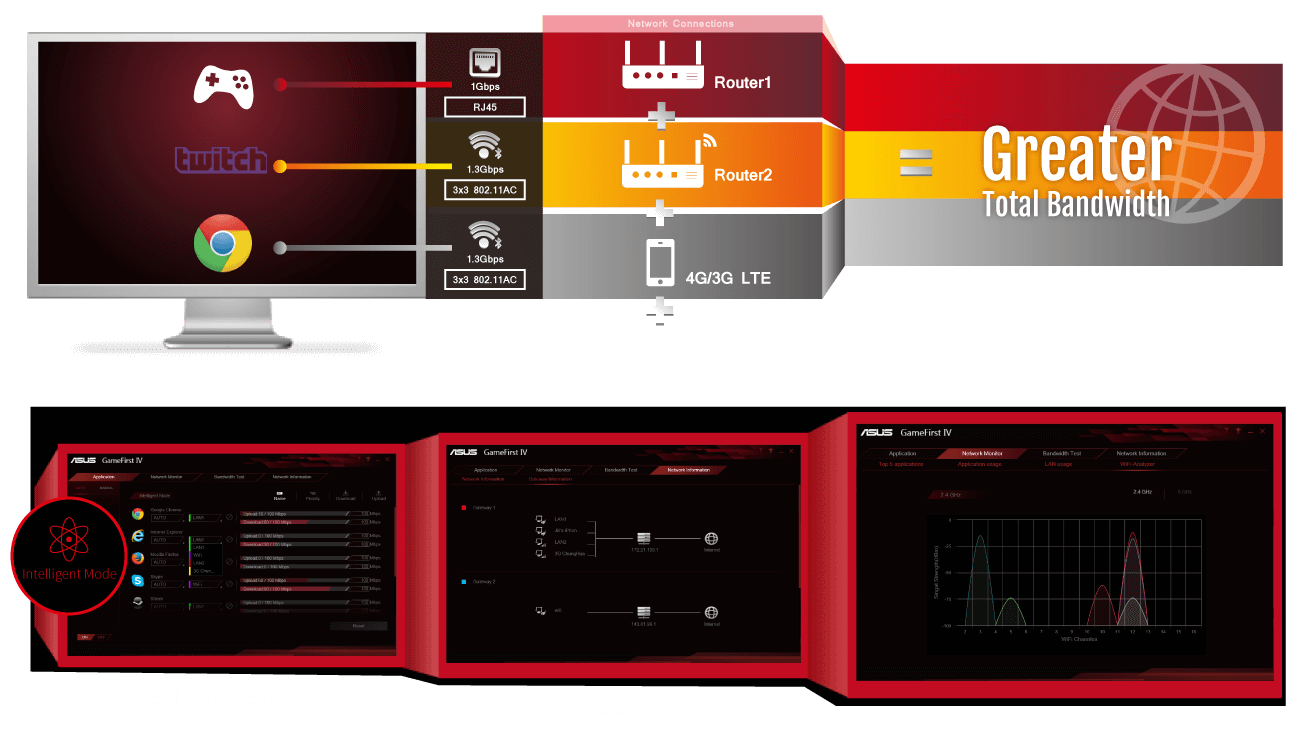 GameFirst IV Beta 將網路流量最佳化,提供更快速且無延遲的線上遊戲品質 - 現已新增 Multi-Gate Teaming 來集結所有網路,獲取最大頻寬和最流暢的遊戲體驗。 另外,全新的智慧模式會自動分析新的應用程式資料以編輯資料庫,確保每一款遊戲都能發揮最佳效能。